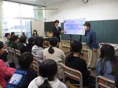 まず、留学生から自己紹介や出身国であるタイ、フランス、スリランカについて、国の文化や食事などを英語で紹介してもらいました(ここまでは5年生も参加)。