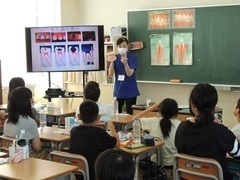 口の中にある歯石の中には、耳かき1杯分で2から3億の細菌がいるそうです。その歯石の中の細菌の動画を見た子どもたちは、「うわあ」と声をあげながら驚いていました。その細菌は、むし歯だけでなく歯肉炎、歯周病という歯ぐきの病気も引き起こします。お話を聞きながら、歯みがきの大切さを改めて感じていました。