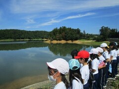 9月24日(水)に、3年生が総合的な学習の時間で、頸城の伝説の一つ『茶臼山の井戸』『大池・小池の話』ゆかりの場所へ行ってきました。今回も読み聞かせサークル「ワンダーランド」の大越さんに案内をしていただきました。