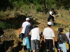 9月30日(火)に、6年生が理科の学習で、頸城区にある荻谷畜産の裏山へ地層見学に行きました。上越理科センターから講師の方をお招きし、地層や頸城区の大地の様子について教えていただきました。
