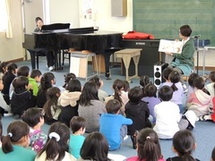 子どもたちは、場面や登場人物の心情に合わせた語りやピアノの音色に聴き入っていました。