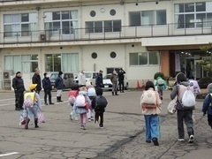 曇り空、土日明けの子どもたちでしたが、児童玄関前には、いつも以上に元気のよい子どもたちの挨拶が響き渡りました。