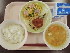 ご飯 牛乳 いわしの竜田揚げごまケチャップソース