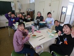 大雪の影響で、当日欠席となった方もいましたが、ピースガーデンの学習でお世話になった11人の地域の方に参加していただきました。「楽しかったよ。」「みんな頑張ったね。」と声をかけていただき、子どもたちもニコニコの会となりました。