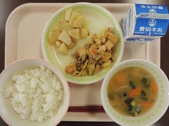 ご飯 牛乳 厚揚げとキャベツの旨辛炒め