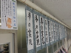 子どもたちが書いた作品は、校内書き初め展(1月15日から28日)で、各学年教室前廊下等に展示します。