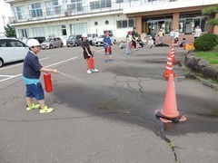 その後、1年生は実際の道路に出て、3年生は体育館に作った模擬コースで実地...