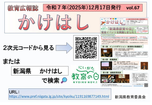 新潟県教育委員会から、教育広報誌「かけはし」65号が発行されました。イン...