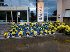11月1日(土)・2日(日)に行われた「くびき文化祭」で、2年生が、くびき花の会の方々のご協力のもと育ててきた菊が展示されました。入口看板前の1番目立つところにおいていただき、来場者に見ていただきました。菊の黄色と、青色の鉢の色合いが目を引き、地域の方からの「かわいいね。」「きれいだね。」という声も聞こえました。